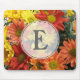 Rote, gelbe, orangefarbene Blume im Herbst. Mousepad