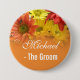 Rote, gelbe und orangefarbene Braut, Hochzeit des Button