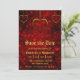 Rot-Gotische Hochzeitssache Das Datum ist mit einem antik goldenen Rahmen, einem hellen, roten Hintergrund und einer stylischen Textvorlage ausgestattet. Ein perfektes Design, das den größten Anzug des gotischen und Halloween-Themas bietet. Bitte klicken Sie auf Personalisieren, um es mit Ihrem eigenen Text anzupassen.