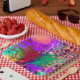 Grüne, rote, schwarze, lila Bilderzellen abstrakte moderne Kunst, gut zum Geburtstag, Jubiläum, Babyduschen oder zu jeder Gelegenheit.