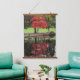 Rote Herbstblätter im Teich Wandteppich Mit Holzrahmen