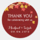 Eine Hochzeit im Herbst? Dieser Dankeschön-Aufkleber ist eine perfekte Ergänzung zu Ihrem besonderen Tag. Die Einrichtung ist in lebhaften und farbenfrohen Herbstfarben gehalten, gelb, orange und braun. Klassisches und Vintages Design. Ahorn-Blätter fallen vom Baum. Auch diesen Herbst fällt die Liebe wieder. Passen Sie den Text an und personalisieren Sie ihn für jeden Anlass. Geburtstagsfeier, Jubiläum, Brautparty, Babydusche, Verlobungsfeier oder alles, was Herbstthema ist. Besuchen Sie meinen Shop, um eine passende Hochzeitseinladung zu erhalten.