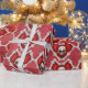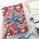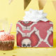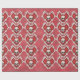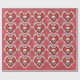 Dieses Packpapier hat ein abstraktes Muster in roten Sternenstern mit roten Herzen, die mit weißen Knochen mit Schädeln in der Mitte des Herzens umrissen sind.