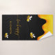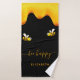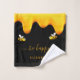 Ein schicker schwarzer Hintergrund mit goldtropfendem Honig. Der Text: Bee Happy mit einem goldenen handgeschriebenen Stil Skript mit Swashes. Personalisieren Sie Ihren Namen und fügen Sie ihn hinzu. Ideal für Ihre Sommerferien- oder Zuhause-Zuhause.