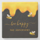 Ein schicker schwarzer Hintergrund mit goldtropfendem Honig. Der Text: Bee Happy mit einem goldenen handgeschriebenen Stil Skript mit Swashes. Personalisieren und fügen Sie Ihren Namen, Familiennamen.