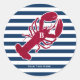 Rote Hummer Monogramm Blauer Streifen Runder Aufkleber