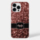 Personalisieren Sie Imitate funkelnd mädchenhafte iPhone Gehäuse mit Ihrem Initial und Namen. Raffinierte, blendende, schimmernde, lebendige, üppige, reiche, lebendige Rose des Glamours. Schöne glamouröse rötlich erdbraune glänzende Glitzer Glitzern. Foto von Rot-Braun-Glitzern, nicht wirklich Glitzer!