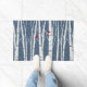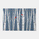 Das Paar roter Kardinal, die in einer Birke sitzen und Schneeflocken auf sternblauem Hintergrund haben.