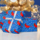 Einzigartige Geschenkverpackung für die Ferien oder Wintergeburtstage. Himmelblau mit Schnee und einem Muster von hellen roten Kardinälen. Von Scarebaby Design.