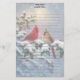Ein Paar nördliche rote Kardinäle stehen auf einem heiligen Ast mit roten Beeren und Schnee bedeckt.