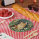Rote Katze im Gartenstil, William Morris inspirierte Kunst.