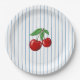 Rote Kirschen auf blauen Streifen Grafikmuster Pappteller