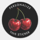 Glossy Red Cherries Black Retro Party Stickers. (Die Hintergrundfarbe kann mit dem Farbwähler auf jede gewollt Farbe geändert werden.)