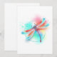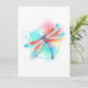Rot, fliegend, künstlerisch gezeichnet, in hellen Farben mit texturiertem Schöpferdchen, blaue Flügel auf weißem Hintergrund, überstrichen mit Aquarellmalerei. Helle rote Libelle.