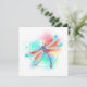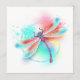 Rot, fliegend, künstlerisch gezeichnet, in hellen Farben mit texturiertem Schöpferdchen, blaue Flügel auf weißem Hintergrund, überstrichen mit Aquarellmalerei. Helle rote Libelle.