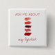 Frag mir über meinen Lippenstift-Werbe-Button-Button für Lippenfarben LipSense-Distributoren mit verschiedenen Farbtönen, von Rosa- und Fuchsienfarben bis zu Rubinrot, Granat und Rot-Bordeaux. Personalisieren Sie es mit Ihrem Text oder ließ Sie den Text so, wie er ist.