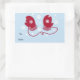 Rote Mitten und Schneeflocken Rechteckiger Aufkleber