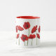 Helle rote Mohnblumen kreisen diese Tasse mit dem Zusammenbringen des roten Randes und des Griffs ein. Eine schöne Tasse für das Büro oder das Zuhause.