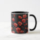 Rote Mohnchen auf schwarzem Hintergrund. Wasserfarbenes Blumenmuster.