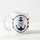 Rote nautische Streifen mit Anker und Monogramm Kaffeetasse