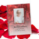 Laden Sie sich ein, um sich nach dem Besuch des eleganten Red Carnation Floral Celebration of Life Funeral Guest Book eine Erinnerung an Ihren Liebsten verlassen. Dieses elegante, maßgeschneiderte, blumengeschmückte Tribute-Notizbuch verfügt über ein digital gemaltes Blumenfoto mit Blütenblättern aus der roten Blume. Personalisieren Sie es mit Geburts- und Sterbedatum, Name und Bild des Verstorbenen.