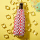 Diese Flasche cooler hat eine moderne Mitte des Jahrhunderts eine Reihe von Ovalen in rot und ziegelrot, mit weißen Ovalen und Kreise aus Linien in ihnen.