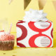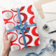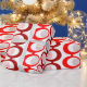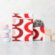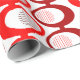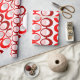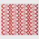 Dieses Verpackungspapier hat ein modernes Design aus einer Reihe von Ovalen in Rot und Ziegelrot, mit weißen Ovalen und Kreise aus Linien in ihnen.