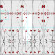 Rote Blütenblätter sind ein stylisiertes Blumenmuster, das in einem gespiegelten Muster dargestellt wird.