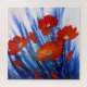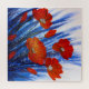 Ein Acrylgemälde aus roten Pappeln, in einem Feld abstrakten blauen Grases.