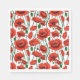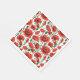 Papierservietten in einem zarten Muster von lebhaften roten Pappeln mit tiefgrünen Stielen und Blätter, auf einer Weile Hintergrund, mit jedem Mohn blühen einzigartig gekrümmt und verdreht, als ob sie sanft in der Brise schwingen.