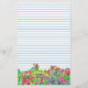 Eine hübsche, bläulich gesäumte Schreibwaren mit sanften, roten, süßen Erbsen, die mit lila Lupinen und Lilavafälgen vermischt sind, die mit Tinte gezeichnet und mit Aquarell bemalt wurden.