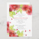 Delikate rote und rosa Blume Blumenfrühling Hochzeitspaare duschen Einladung mit schönen Blume in Rot, Rosa und Marsala, Blätter in Grün und Text in Grau. Dieses elegante und moderne Design ist Teil eines Hochzeitsgeschehens und ist ein vollständig anpassbares Template für eine Hochzeitsfeier oder eine Hochzeitsfeier.