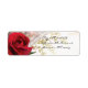Ein nahes Foto einer Single-rote Rose auf zauberhaftem Hintergrund mit einem Bogengang und kletternden Rose. Das wäre schön für eine elegante Hochzeitseinladung.
