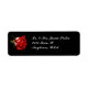 Rücksendeadressen-Aufkleber in Schwarz mit Single rote Rose blühen.