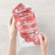 Eine elegante Collage von rote Rosen beleuchtet diese dreiseitigen Hochzeitseinladungen mit Ihren Details in schicken Schriften und einer abnehmbaren RSVP-Karte für die Gäste zum Abschluss und zur Rückkehr. **Vergessen Sie nicht, eine Postkarten-Briefmarke auf den RSVP-Kartenbereich zu legen und auf der Vorderseite eine vollständige Erstplatine zu tragen.