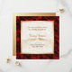 Fein und elegant in goldgekleideten Damast, mit einer schönen Fülle von rote Rosen an der Grenze. Passen Sie Ihre Brautparty-Informationen auf Vorder- und Rückseite an.