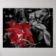 Hier ist ein selektives Farb-/Farbspritzer-Foto einer rote Rose, die mit Morgentau bestreut ist. Im Schwarz-Weiß-Hintergrund gibt es auch Taubstropfen auf den Blätter des Rosenstrauchs. Dew on Rote Rose Foto © 2017 Regina Blankenship.