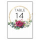 Rote Rose Hochzeitskarten Tischnummer gedruckt goldene Ringe, geometrische Rahmen und eine schöne Aquarell florale Anordnung der rote Rose Bud Blüte Eukalyptus Blätter Grün und einen Hauch von Gold Konfetti. Wenn Sie dieses Design für passende Produkte wünschen, schreiben Sie mir bitte.
