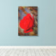 Rote Rose auf farbenfroher Umgebung im Herbstgarten, Malwirkung
