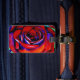 with original design of red English rose macro flower from original watercolour artwork painting by Sacha Grossel Art. Large close up of crimson flower with blue highlights inspirred by love and passion