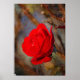 Rote Rose auf farbenfroher Umgebung im Herbstgarten, Malwirkung