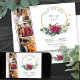 Rote Rose Hochzeit speichern Sie das Datum mit 3 benutzerdefinierten Fotos, Aquarellfarben rote Rosen, Eukalyptus-Blätter und einem goldgeometrischen Rundrahmen. Die Vorlage ist für Sie bereit, um Ihre Hochzeitstermin Details der Vorderseite sowie die Braut und Bräutigam Monogramm Initialen auf der Rückseite. Botanisches Blumenthema mit einfacher Typografie und moderner Eleganz.