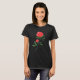 Blumenkunst einer rote Rose mit grünen Blätter und Stamm auf einem schwarzen T - Shirt für Frauen