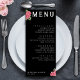 Schwarzes Hochzeitsmenü mit rote Rosen. Personalisieren Sie es mit Ihren Veranstaltungsdetails und Speisekarte.