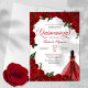 Quinceanera Einladung in rubinrote rote Rose mit goldenen Akzenten und ein Mädchen mit elegantem Ballkleid. Karo den Shop für diese Einladung mit Mädchen in verschiedenen Haarfarben und Hautfarben.