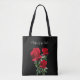 Mutter der Braut, oder Bräutigam, rote Rosen zu Tasche. Aufnehmen auf einer Seite der schwarzen Tasche mit rotem Text und realistischen Rose Design.