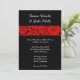 Diese romantische, klassische Hochzeitseinladung wird in schwarzer Farbe mit hübschen rote Rosen mit formalem Layout und Text in einem Drehbuch gezeigt, das die Namen der Braut und des Bräutigams hervorhebt. Papier angezeigt ist die Matte Anpassen Sie diese Hochzeitseinladung durch Klicken auf die Schaltfläche Anpassen, suchen Sie auf der rechten Seite, um die Textfelder zu finden, ändern Sie den Text in den entsprechenden Feldern, um Ihre Informationen hinzuzufügen.