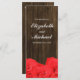 Ein landesweites Hochzeitsprogramm mit rote Rosen auf einem rustikalen dunkelbraunen Holzboden. Einfache Anpassung für Ihre Veranstaltung.
