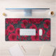 Rote Rosen mit grauen Blätter auf schwarz Schreibtischunterlage
