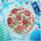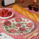 Rote Rosen mit Valentine Hearts Pattern Romantische Papierplatte
